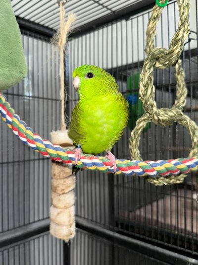 In our setups, we also include one rope perch per cage, placed at the highest point to serve as a cozy sleeping spot and to let the birds rest their feet. However, rope perches can pose risks — some birds may chew on the fibers, swallow threads, or get tangled. Always supervise your bird when using a rope perch, and remove it if you notice chewing or signs of damage.